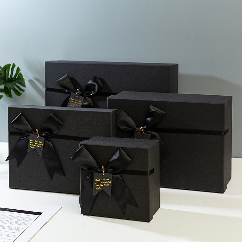 Hộp quà màu đen sang trọng thắt nơ Kích thước 17*12*4CM - TleeJewelry free ship